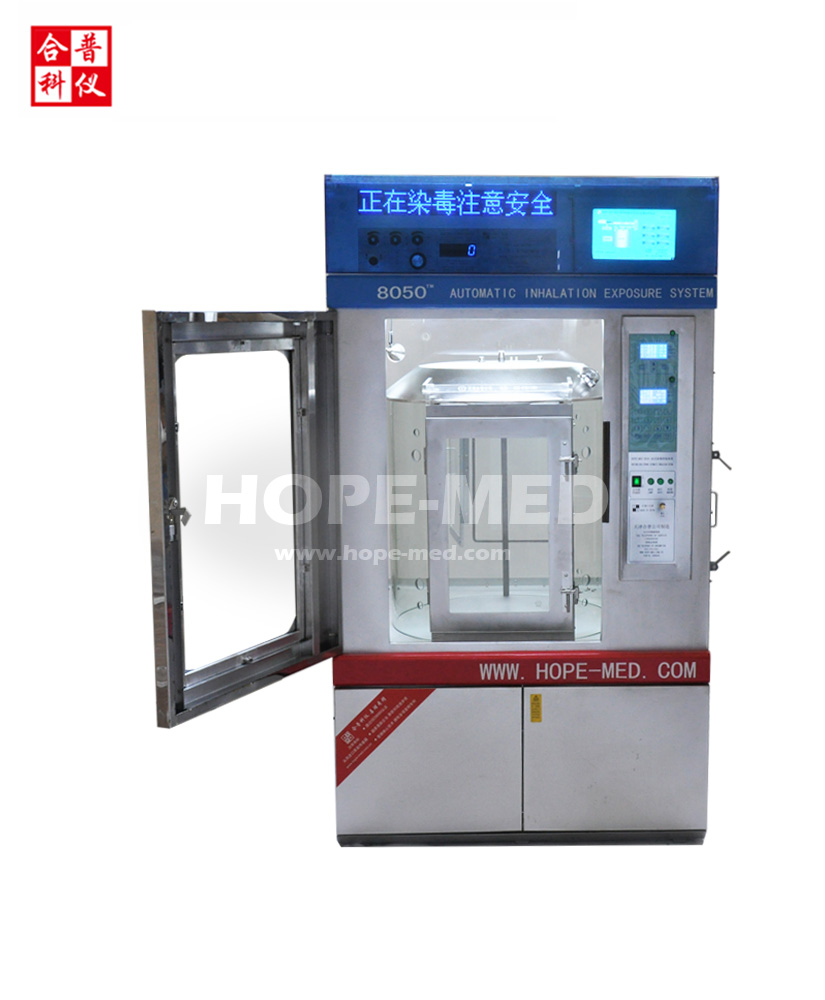 Test substance supply is possible via various liquid, dust aerosol generators, cigarette